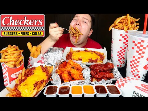 Chili Cheese Fries, Fried Mozzarella, Cheeseburger, Cheesy Fries • Checkers Drive-Thru • MUKBANG - Dairy Free Cheese Checkers - Watch me eat at Checkers, my FAVORITE Drive-Thru restaurant, featuring the ultimate Chili cheese fries! • 'IT'S JUST WATER WEIGHT' merch at my Merch ...
